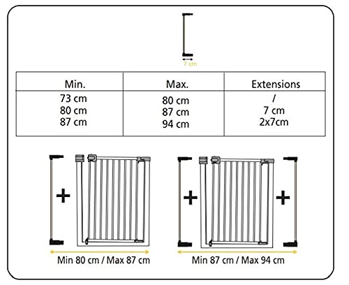 Larghezza senza estensione: 73-80 cm. fino a 136 cm con estensione (venduta separatamente) Altezza: 91 cm