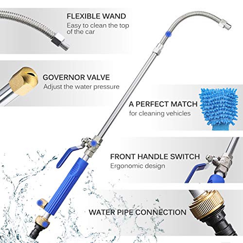 2. 【Estendere bacchetta】: con una bacchetta flessibile estensibile, il Magic Power Jet è facile da pulire il tetto della vettura senza dover piegare il corpo. Si applica a tutti i tubi da giardino standard da 3,5 cm e ad altre misure standard di connettori per tubi femminili da 2,5 cm.