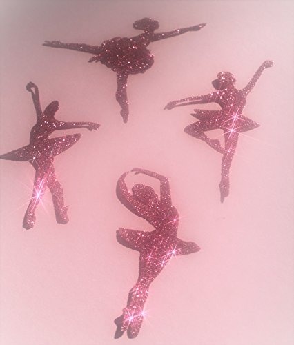 Safirmes, 4 ballerine a trasferimento termoadesivo hotfix, glitter, colore rosa, 8,5 cm