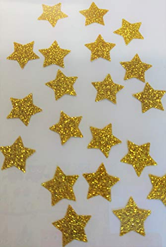 SAFIRMES - Toppa termoadesiva con 20 stelle dorate, 15 mm, effetto brillante