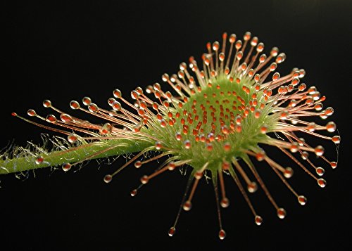 La Rosolida spunta per più anni dal suo bozzolo invernale o ibernacolo e sviluppa foglie disposte a rosetta, che contengono circa 200 tentacoli sottili. Alle estremità delle foglie si trovano gocce cangianti e appiccicose che emanano un profumo simile al miele. Questo profumo è particolarmente amato dalle mosche della frutta, che si posa ..... (Nelle foto si può trovare una foto della parte posteriore della nostra carta di semi con le istruzioni per la semina e la cura completa)