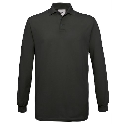 B&C Mens Safran Long Sleeve Polo, Nero (Black 000), X-Large Uomo