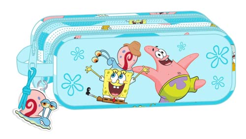 SAFTA- Astuccio Doppio Spongebob Stay Positive 21 x 8 x 6 cm, Multicolore, 812291513