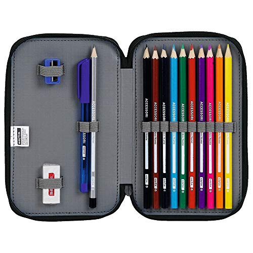 Safta Welcome Gamers Black - Astuccio scolastico ufficiale con 28 pezzi, 125 x 40 x 195 mm