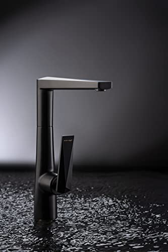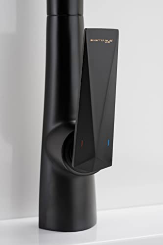 Sagittarius One 44S1-B Rubinetto Lavello Cucina Nero | Miscelatore Cucina Design con Rotazione a 360° | Rubinetto con Cartuccia in Ceramica | Rubinetto per Cucina in Ottone Nero