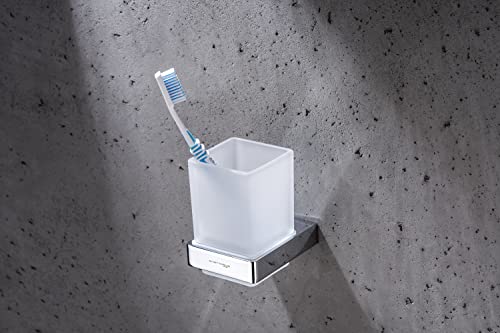 Sagittarius One 70S1 Bicchiere Porta Spazzolino Bagno | Portaspazzolini da Bagno Zinco Cromato | Portaspazzolino da Muro Con Vetro Smontabile