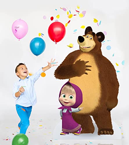 Sagoma in Cartone MASHA e ORSO, Altezza Naturale 1,50 m, Piede Autoportante, Decorazione ideale per Compleanni Feste ed Eventi, Realizzato in Cartone Resistente, 150x90