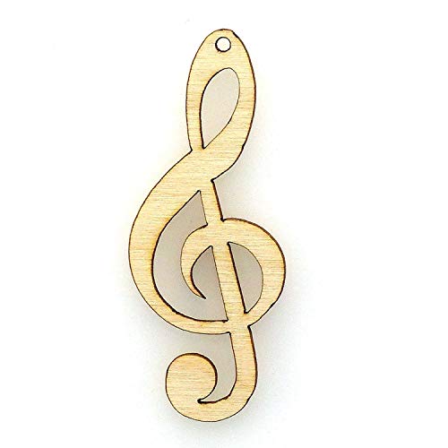 Sagoma in legno a forma di chiave di violino, confezione da 10 pezzi, spessore 3 mm Medium 10cm x 4cm Natural-Top Centre Hole
