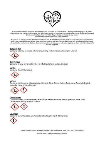 Profumazioni: Bakewell Tart, Berrylicious, Vanilla, Lemon, Clean Cotton, Lavender, Magnolia, Cherry, Sea Breeze, Lime, Rose, Candy Floss, White Musk.