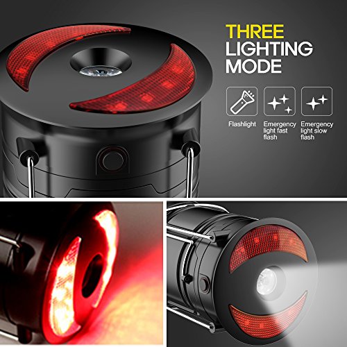 Tre modalità di illuminazione: ci sono una torcia elettrica e luci di emergenza nella parte superiore della lanterna. Per prima cosa premi il pulsante una volta e la torcia si accende. Seconda pressione, la torcia si spegne mentre le luci di emergenza lampeggiano velocemente. Terza pressione, la luce di emergenza lampeggia lentamente.