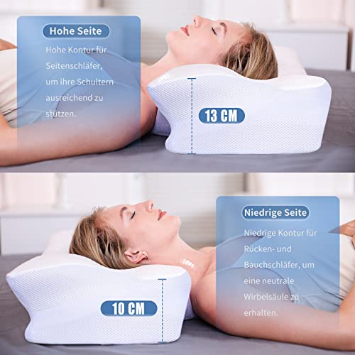 SAHEYER Cuscino ergonomico per il collo, cuscini in Memory Foam Cuscino ortopedico di sostegno per il collo Cuscino per il sonno laterale Cuscino per migliorare la qualità del sonno (Bianco)