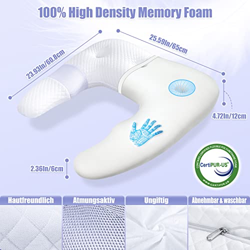 SAHEYER Cuscino per il sonno laterale, cuscino a forma di U in Memory Foam Cuscino ortopedico ergonomico di supporto al collo Cuscino per il contorno del letto per chi dorme di lato e di pancia