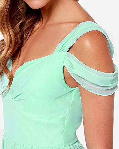 SaiDeng Donne Chiffon Raddoppiare Scollo A V del Strass Increspato Busto Alto Basse Sera Vestito
