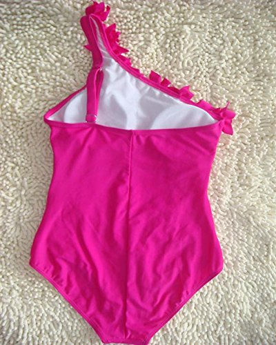 SaiDeng Donne Obliquo Bello Fiori Increspato Una Spalla Un Pezzo del Comodo Costume da Bagno Rose S