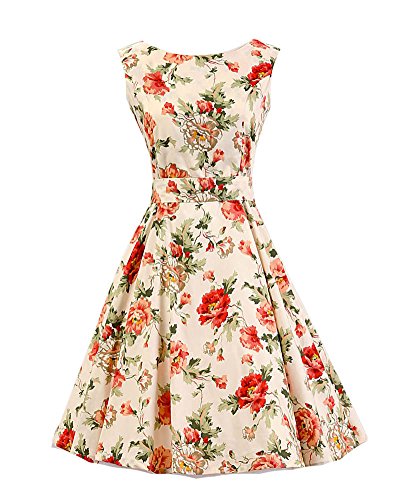 SaiDeng Donne Retro 50s Senza Maniche Floreale Primavera Giardino Vestito S