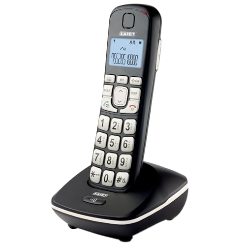 SAIET - Telefono Cordless Casa e Ufficio 13500690 - Cordless con Vivavoce e Audio Amplificato - Telefono Cordless con Tasti Grandi e Schermo Intuitivo