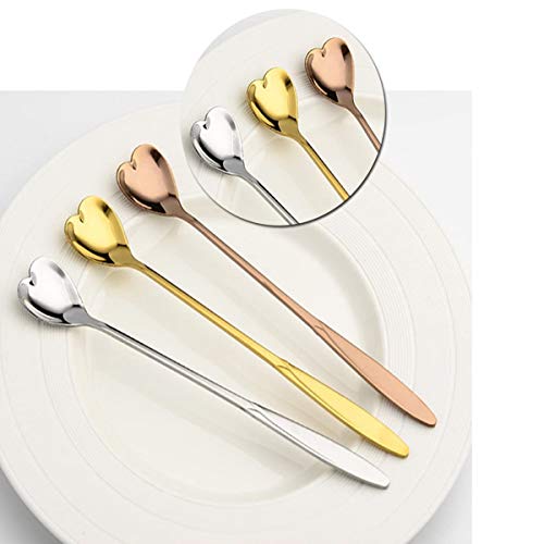 Saijer Cucchiai di Forma di Cuore, Cucchiai di Acciaio Lunghi Dessert Cucchiaio per Latte Ice Cucchiaini da tè Lungo Sorso di caffè Mescolare Cucchiaio Oro Rosa Argento Oro 6 PCS Cucchiaini da caffè