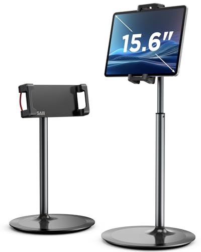 SAIJI Supporto per tablet regolabile, supporto per telefono con ampia base stabile, angolo regolabile e altezza compatibile con iPhone iPad Pro Air Mini da 4,7-12,9" (Nero)