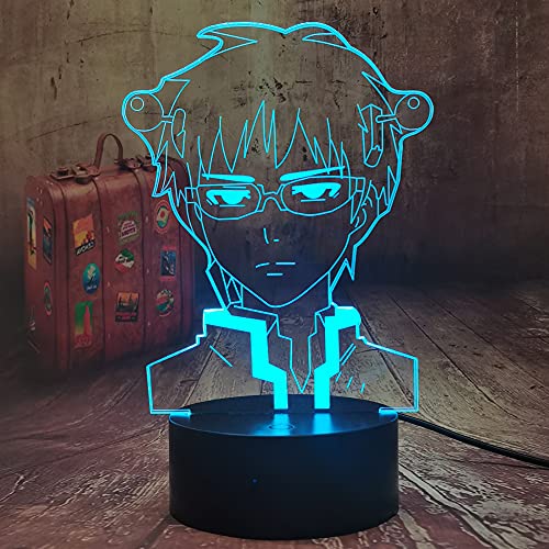 Saiki K LED Anime Lamp 3D LED Illusion Nightlights 7 colori che cambiano USB Touch Remote Control Lampada da tavolo per decorazioni per feste di Natale Fan per bambini Giocattoli di compleanno