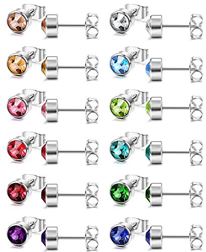 Sailimue 10-12 paia di orecchini in acciaio inox per gli uomini le donne Piercing orecchini CZ borchie 4-6mm