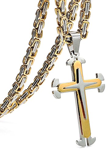 5 mm bianco e giallo catena bizantina, l'aggiunta della croce ciondolo o la porta la catena da soli, per uomini perfettamente.