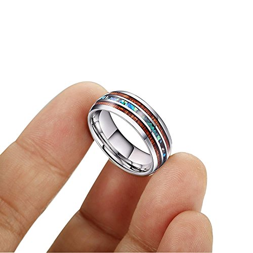 Sailimue Gioielli 8mm Titanio Anello per Uomo Cinturino di Fidanzamento Conchiglia Abalone e Legno Vintage Anelli Taglia 14-29
