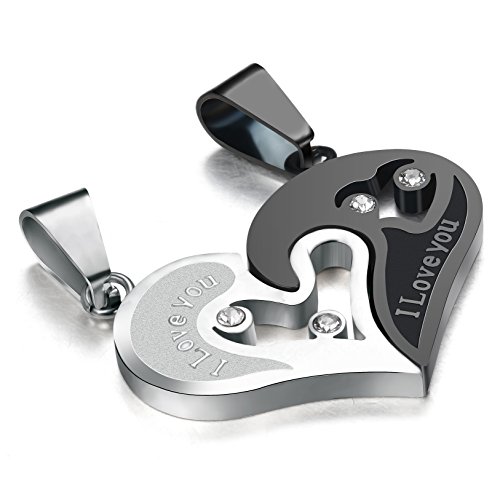 Sailimue 2 Pezzi Collana in Acciaio Inox per Uomini Donne Collana Paio Ciondoli Cuore di Puzzle