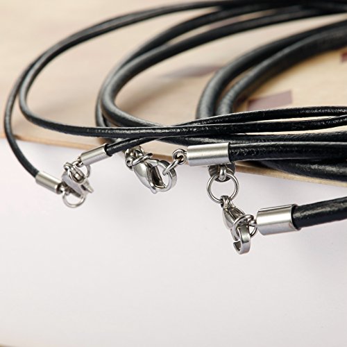 Sailimue 3 Pezzi Pelle Collane Uomo Donna Lunghe Nere Acciaio Larghezza 2mm 3mm 4mm
