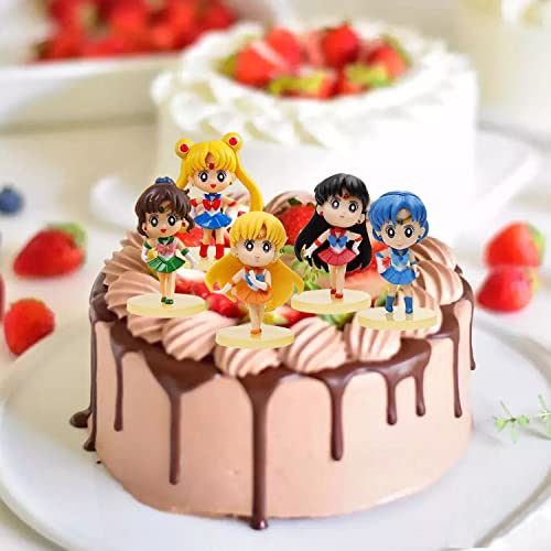 Sailor Moon Action Figure, 5 pezzi Sailor Moon Bambini Decorazione Figures, Sailor Moon Figurines, Sailor Moon Cake Topper, Sailor Moon Mini Figures Set, Figura Anime per Festa Compleanno Bambini