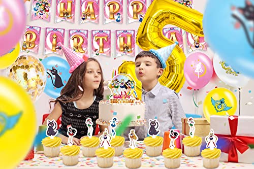 Sailor Moon Compleanno Palloncino 52 pcs, Sailor Moon Decorazioni per Feste, Palloncino oro Numero 5, Sailor Moon Cupcake Topper, Buon Compleanno Striscioni, Forniture per Feste di Compleanno