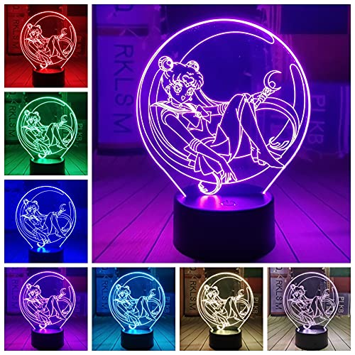 Sailor Moon Luce notturna Sailor Moon 3D LED luci notturne per bambini 16 colori con telecomando Touch Lampada da tavolo Arredamento camera da letto Lampada da allattamento per