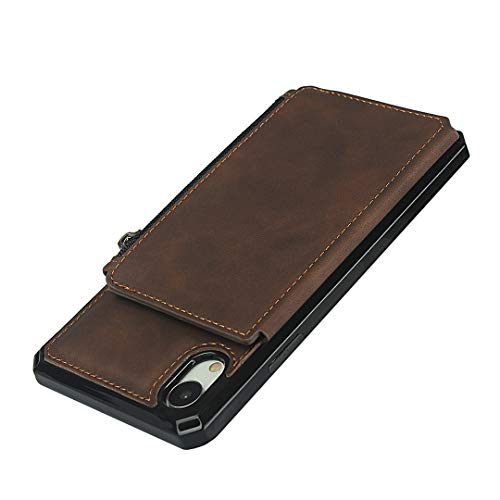 SailorTech Custodia Portafoglio per iPhone XR Premium PU Custodia in Pelle Zipper Tasca Posteriore con Slot per Carte Cinturino da Polso Marrone Scuro