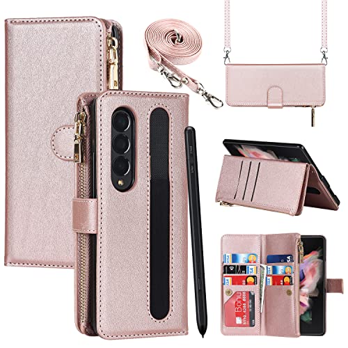 SailorTech Custodia a tracolla in pelle per Samsung Galaxy Z Fold 4 5G, custodia a portafoglio con porta penne S slot per carte di credito Portafoglio con cerniera slot per contanti Custodia flip con
