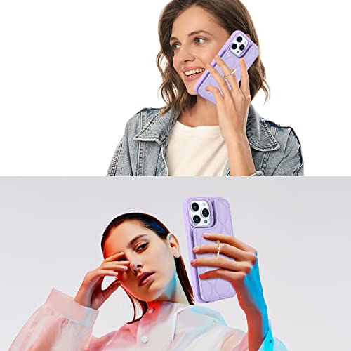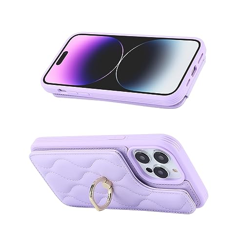 SailorTech iPhone 14 Pro Max Custodia con portacarte, iPhone 14 Pro Max Custodia telefonica ad anello con supporto per carta di credito Custodia carina e alla moda per iPhone 14 Pro Max - Viola
