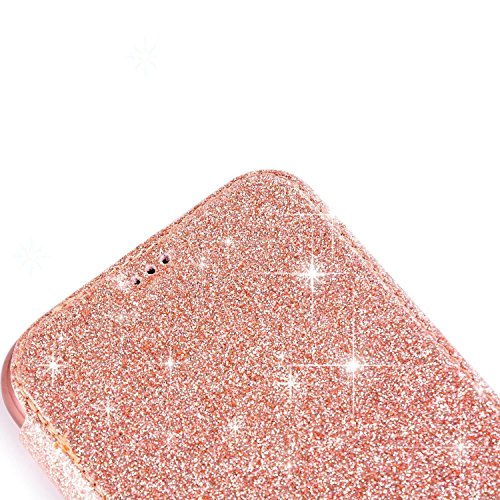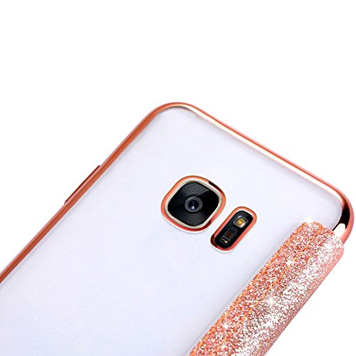SainCat Custodia Galaxy S7 Edge, Cover Galaxy S7 Edge a Libro Bling Glitter, Custodia in Pelle Portafoglio Flip Cover per Samsung Galaxy S7 Edge-Oro Rosa
