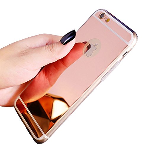 SainCat Custodia iPhone 6, iPhone 6S Cover Silicone Specchio, Ultra Slim Silicone Morbida Gomma Protettiva Anti-Scratch Cover per iPhone 6/6S-Rose Gold