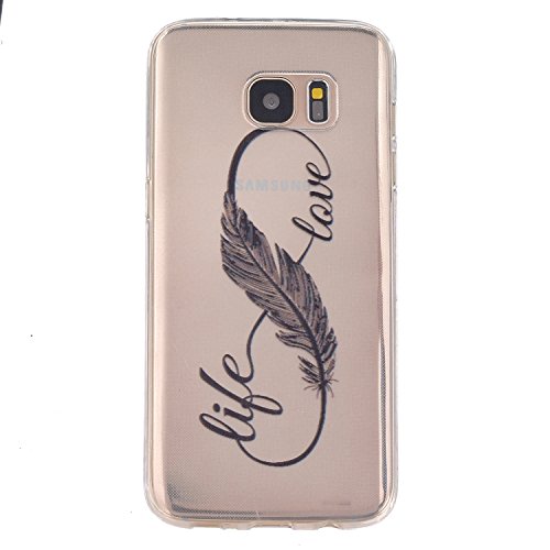 SainCat Samsung Galaxy S7 Edge Custodia,Ultral Slim Trasparente Soft TPU Gel Silicone Elegante Printing Drawing Samsung Galaxy S7 Edge Cover,Clear Sottile Custodia Fit Morbido Flessibile Protettivo Skin Protettiva Shell Bumper Cover Case Per Samsung Galaxy S7 Edge Free Stilo Penna-Carattere Piume
