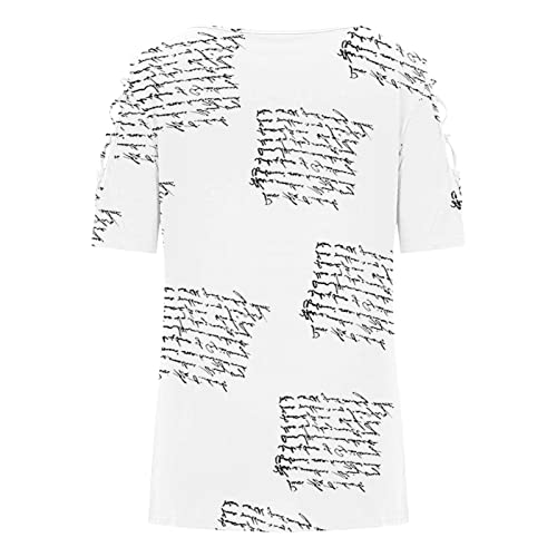 Saingace Camicetta da donna senza maniche - casual, classica stampa vintage, scava, a spalla fredda, a maniche corte, elegante, con scollo rotondo, gilet da maglia, bianco, M