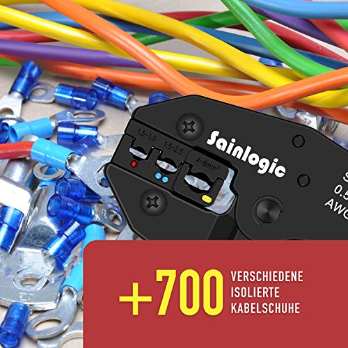Sainlogic - Set di pinze crimpatrici per capicorda con 700 pezzi, connettori elettrici, assortimento 0,5-6 mmq per capicorda isolati