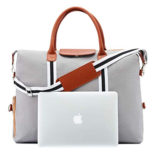 ♕ 4 TASCHE INTERNE E 1 ESTERNA: Il weekend bag ha 4 tasche interne: Uno scompartimento più grande per il notebook (fino a 16.1 pollici), caricabatterie e/o iPad, anche 3 tasche più piccole per cuffie, biancheria intima o borsa da toilette. Inoltre ha una tasca ad accesso rapido per chiavi, portafogli, telefono cellulare e passaporto all'esterno.