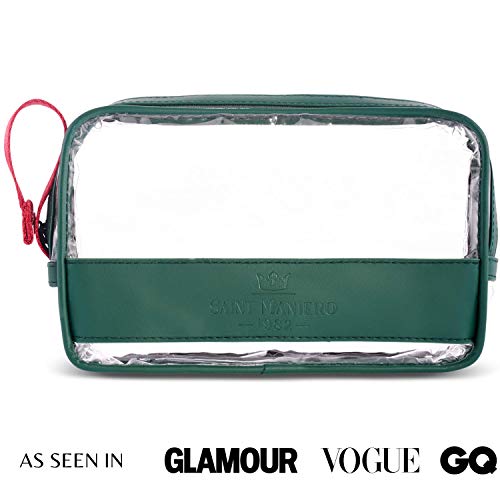Saint Maniero ® Trendy Borsa da toeletta trasparente da bagaglio a mano-maggiore volume accettabile per il controllo di sicurezza-spazio ben organizzato mediante fondo piano-colori diversi (Verde)