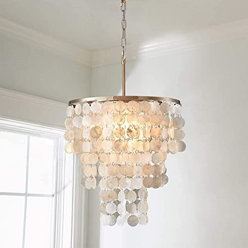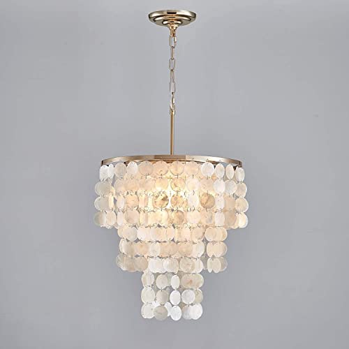 Saint Mossi - Lampadario Morden a 1 luce Capiz, lampada a sospensione, stile costiero, per sala da pranzo, soggiorno, camera da letto, cucina, isola bianca