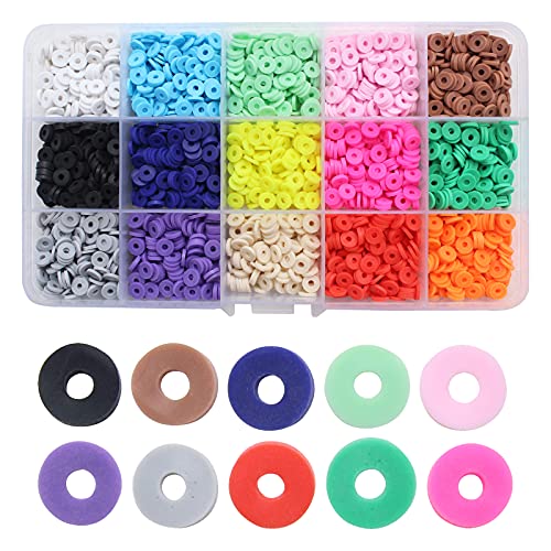 Saizone 3000 pezzi perline per braccialetti Colorate perline piatte di Argilla polimerica rotondo 15 Colori, per Bambini bigiotteria Fai da Te Collane Braccialetti, orecchini, Ciondolo. (6x1mm)