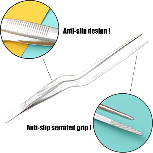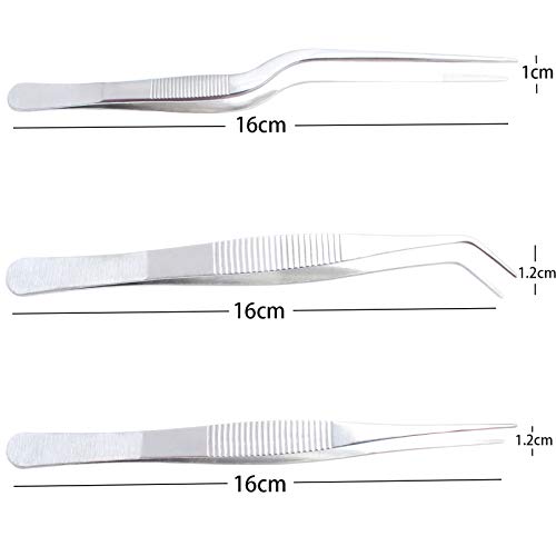 Saizone Pinzette da Cucina 3 Pezzi, Pinze Cucina,Pinze per Alimenti da Cucina in Acciaio Inox, Pinzette Dritte, Pinzette Curve, Set di Pinzette, Pinzette da 16 cm / 6 Pollici, Argento