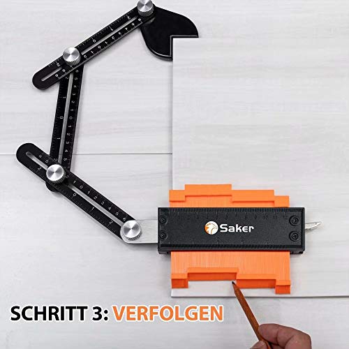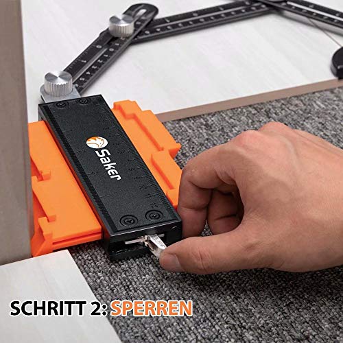 Istruzioni per l'uso: il nostro calibro per contorni misura 12 cm e 25 cm. Può essere utilizzato per misurare la forma di oggetti irregolari. Crea uno stencil immediato per segnare tagli precisi delle piastrelle.