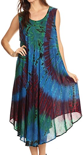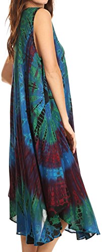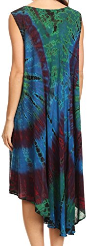 Sakkas 17009 - EULA Boho Maniche Tie Dye Lungo Serbatoio Caftano Sundress/Beach Cover Up - Royal Blue - OS