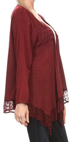 Sakkas 30232 - Isenia Cardigan Open Front Kimono Top Manica Lunga Ricamata a Maniche Lunghe - Borgogna - OSP