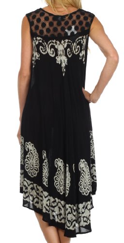 Abito Caftano caratterizzato da scollo unico in pizzo, vestibilità comoda, dettagli ricamati e design batik.
