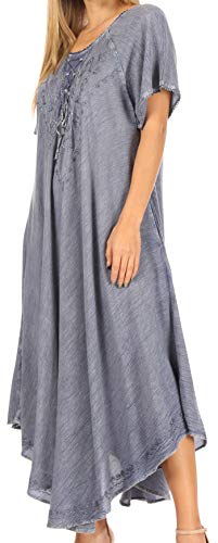 Sakkas 1701 - Abito da Sole Lungo con Corpino Ricamato con Lacci Lilia - A-Blue - OS