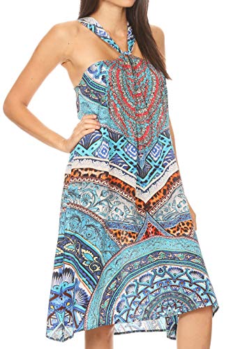 Sakkas 1915 - Abito Corto Smanicato Casual Estivo Boho Cocktail da Donna con Stampa - TTU296-Turq - OS